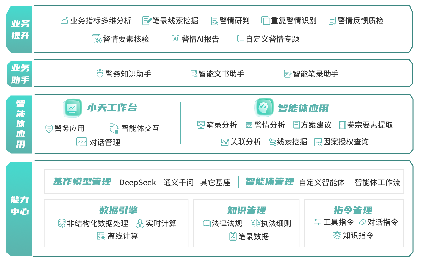 具备语义理解、知识推理、信息关联等能力,贴合公安复杂业务场景。