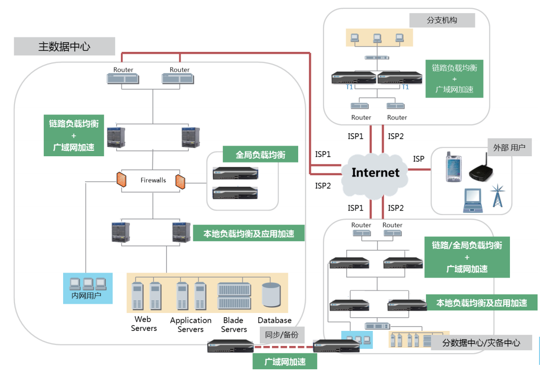 全局负载:支持全局的配置信息同步、状态信息同步;根据地域就近、静态就近、动态就近、权重、服务器数量等原则选择最佳站点,在多数据中心节点中选择最优节点;